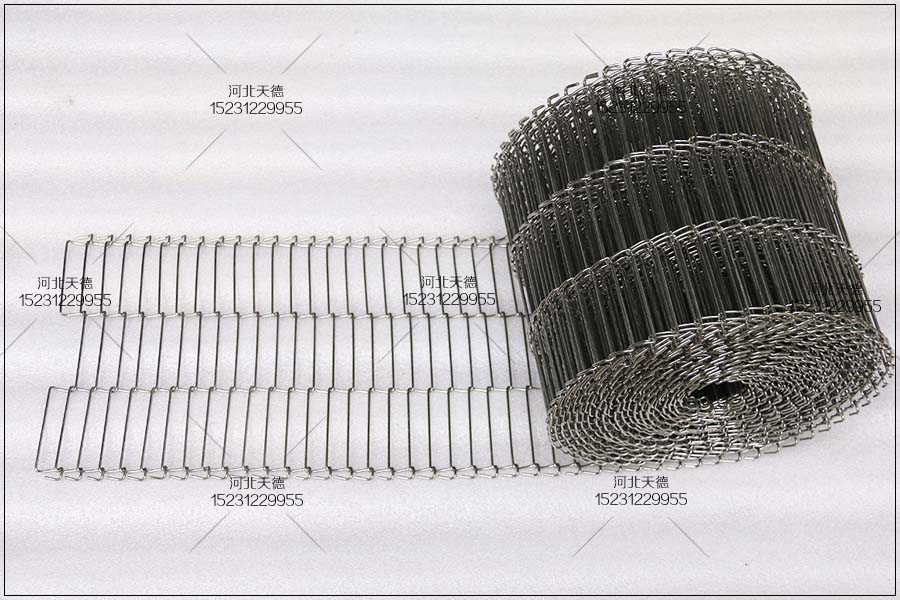 4、乙型金屬網帶:又稱梯形網帶或一字網,這種網帶通常系齒輪傳遞的輸送網帶,具有透氣性好的優(yōu)點,拉力也很是的均勻, 做工精細,此金屬網帶具有轉動靈活、平穩(wěn)性好、耐高溫、耐壓力、耐腐蝕、壽命長等多種優(yōu)點。