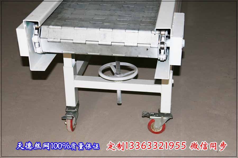 鏈板輸送機生產基地在安平絲網之鄉,河北天德絲網制品有限公司二十多年建廠以來,贏得了上萬家客戶的好評與信賴。 鏈板輸送機利用固接牽引鏈上鏈板在水平或傾斜方向輸送物料,由驅動機構、松緊裝置、牽引鏈、板條、電機減速機、變頻器、機架等部分組成。廣泛用在礦山、煤炭、化纖、電力、水利、機械設備制造等輸送行業中。