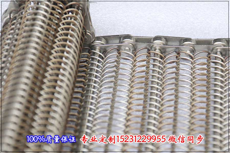 河北天德建議客戶采用鏈條式不銹鋼輸送帶,根據客戶提供的信息將輸送帶的總寬度定制為650mm,總長度為80m,鏈條節距為38.1mm,絲徑為1.5mm,孔徑為15*20mm,桿直徑為8mm,桿之間的距離為120mm左右,材質采用不銹鋼304材質。